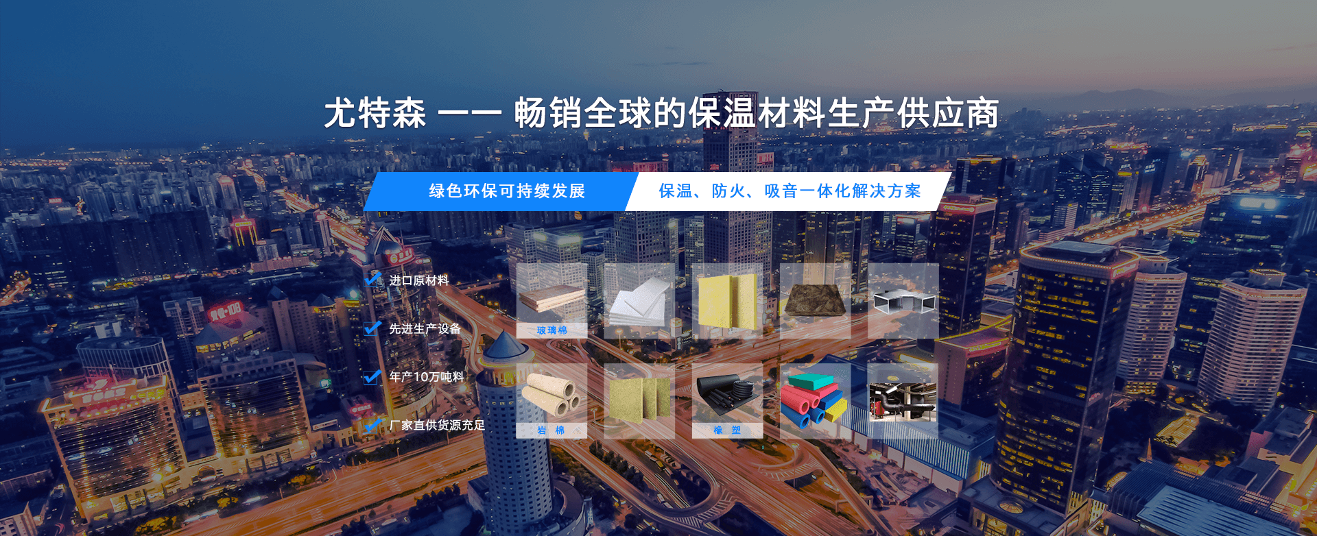 尤特森集團總部位于廣州,作為全球建筑保溫材料企業,尤特森集團勇于突破、敢于創新,利用本身在材料制作和建筑科學的技術,專業生產高端玻璃棉、巖棉、橡塑、氣凝膠、LNG彈性氈、聲學橡塑吸音板、碳纖維等防火保溫、絕熱吸音材料,為國內外建筑、工業、能源、交通運輸等應用領域,提供安全有效的節能保溫、環境降噪方案。